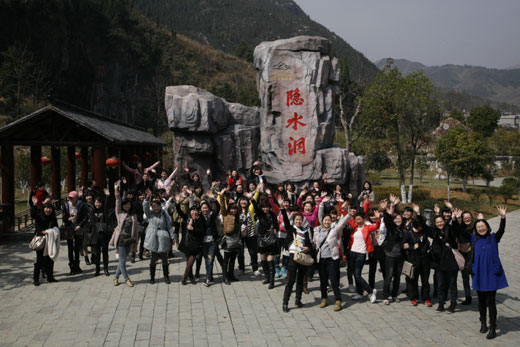 緊接著是拜訪咸寧福星城。營銷中心大門外再次拉出現了“巾幗靚秀”字樣的橫幅,項目部的同胞們早已恭候在此。大家簡短地參觀了營銷中心,并在門口合影留念,隨即啟程前往隱水洞。