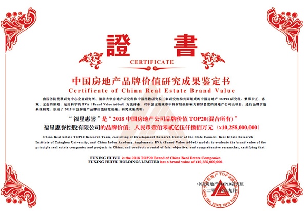 2018年9月19日,“2018中國房地產品牌價值研究成果發布會暨第十五屆中國房地產品牌發展高峰論壇”在北京隆重舉辦 ,大會發布了萬科、恒大在內的2018中國房地產優秀品牌企業名單。其中,福星惠譽控股有限公司蟬聯“2018中國房地產公司品牌價值TOP20(混合所有) ”和“2018中國房地產城市綜合運營領先品牌”獎項,這也標志著作為城市更新與幸福生活服務商,福星惠譽通過創新發展,穩居全國房地產專業領先品牌行列。